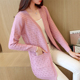 红惑春季女装春秋黑白毛衣开衫长袖两件套潮套装裙针织衫修身外套