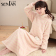 2016新款条纹珊瑚绒睡裙女冬长袖连帽家居服厚款保暖甜美睡衣长裙