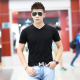 夏季男装新款V领短袖男t恤青年商务修身休闲纯棉半袖大码半袖短衫