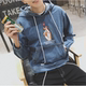 My方少男装三金冠 韩版春装手势印花连帽套头男士牛仔卫衣外套