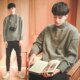 My方少三金冠 17春季纯色插肩袖套头毛衣日系宽松港风男士针织衫