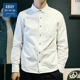 GBOY原创简约纯色男士长袖衬衫 日系潮流春季清新圆角领厚实衬衣