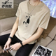 男士夏季新款港风短袖t恤男装日系字母印花修身圆领T恤男潮半袖衫