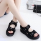 厚底凉鞋女夏2017新款韩版百搭松糕底亮片水钻魔术贴夏季平底鞋子