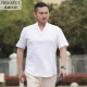 zhaorui男士亚麻短袖T恤大码宽松夏季加肥加大中国风v领棉麻体恤