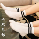 日系素色两条杠短袜 简约条纹全棉中筒袜 百搭女生短筒袜子 女