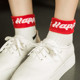 韩国二杠袜子女原宿滑板袜纯棉字母三杠条纹中筒袜运动百搭短袜女