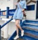 ◆MUGU蘑菇◆夏装2017新款女网纱牛仔连衣裙女夏短袖a字裙中长款