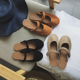 南在南方百搭推荐圆头低跟一字带罗马凉鞋露趾绒面平跟百搭凉鞋女