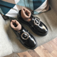 南在南方 春季款百搭小单 品韩系金属圆扣英伦黑色系亮面小皮鞋女