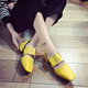 2017春夏季新款韩版气质尖头浅口平底皮带扣豆豆单鞋中空女凉鞋子