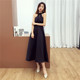 夏装2017新款女韩版气质吊带露肩百褶荷叶边高腰修身连衣裙长裙夏