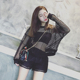 春装2017新款女韩版网格缕空长袖宽松透视t恤+缕空短裤两件套套装