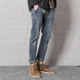 [兔先森]日系复古春秋新款韩版修身男士小脚裤牛仔裤水洗长裤