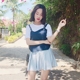 青蔷薇 夏季季韩版学生高腰短袖连衣裙a字短裙收腰衬衫裙女 L666