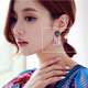 韩国奢华气质长款水晶链条流苏耳环女个性复古满钻圆形耳钉耳饰品