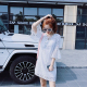 西西小可2017新款短袖露肩连衣裙女夏季背带裙子牛仔网纱假两件潮