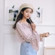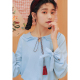 2017爱爱丸夏装新款甜美系带荷叶边v领喇叭袖纯色雪纺衫上衣