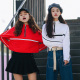短袖t恤女学生爱爱丸2017夏装新款圆领撞色宽松简约短款打底上衣