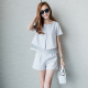 时尚套装女夏装2017新款韩版欧根纱拼接短袖上衣短阔腿裤两件套潮
