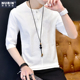 冬季男士白色打底衫秋衣圆领加绒卫衣潮牌男款长袖t恤小衫上衣服