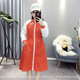 G-20包邮高端2016冬装 兔毛翻领喇叭袖 甜美收腰长款棉衣棉服6220