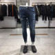 韩版潮流男士修身牛仔裤男青年小脚裤个性补丁贴布破洞长裤子男