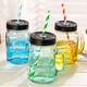 创意糖果色渐变杯玻璃杯带盖水杯夏季饮料透明杯吸管女士水杯