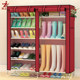 鞋架多层 简易鞋柜双排收纳组装特价铁艺收纳防尘布鞋柜现代简约