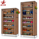 双排鞋架 简易多层组装家用铁艺防尘收纳布鞋柜特价 鞋橱简约现代