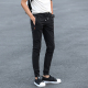 男生卷边弹力牛仔裤男修身型小脚秋冬款韩版青少年男学生个性潮流