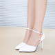 2017春夏漆皮尖头高跟鞋细跟性感单鞋白色公主镂空搭扣包头凉鞋女