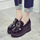 圆扣流苏松糕鞋女2017春季新款浅口漆皮休闲厚底坡跟套脚高跟单鞋