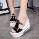 2016夏季新款一字拖鞋坡跟防水台鱼嘴凉拖鞋超高跟厚底松糕跟女鞋