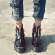 2017原宿三扣马丁短靴潮女短靴厚底中筒靴马丁靴女靴复古英伦风女