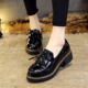 秋季新款流苏韩版圆头平底低跟帮单鞋亮小皮鞋女学生软底套脚黑鞋