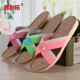 胜利拓 居家亚麻拖鞋夏季室内一家三口防滑地板凉拖鞋女家居拖鞋