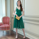 2017夏高端女装新款A字裙系带拼接蕾丝喇叭袖复古名媛气质连衣裙