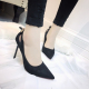 欧美2017春秋新款时尚性感浅口尖头后跟镂空蝴蝶结细跟高跟单鞋女