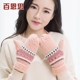百恩思 半指手套女秋冬季加厚保暖针织毛线露指翻盖可爱韩版学生