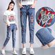 2017春秋款民族风刺绣牛仔裤女九分裤绣花哈伦裤宽松显瘦小脚裤潮