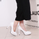 女士工装黑色职业白领超高跟鞋细跟防水台圆头女士职业白色裸色鞋