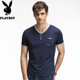 花花公子短袖T恤男夏季青年男士V领简约休闲时尚弹力修身打底衫薄
