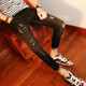 春秋新款学生破洞九分牛仔裤男韩版弹力修身小脚裤男士潮流长裤子