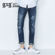 [清仓]gxgjeans男装时尚破洞贴布青年微弹休闲牛仔裤潮63905006