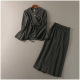 M+O系列 春季V领长袖纯色上衣+中腰直筒裤两件套装女A@48-2120