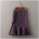 A+K系列 2016冬季纯色中长裙荷叶摆包臀毛呢半身裙女F@41-6901