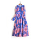 2017春夏新品真丝唯美印花腰部抽绳飘逸长袖连衣裙