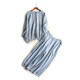 17春品螺纹深V领贴布植绒减龄条纹长袖毛衫+长裤套装