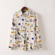 惠衣阁春装长袖卡通印花衬衫英伦风OL通勤印花打底衫淑女上衣减龄